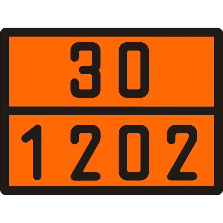 Таблички должны содержать идентификационный номер опасности и номер ООН (номер вещества). В случае с дизельным топливом номер опасности - 30, а номер вещества - 1202.
