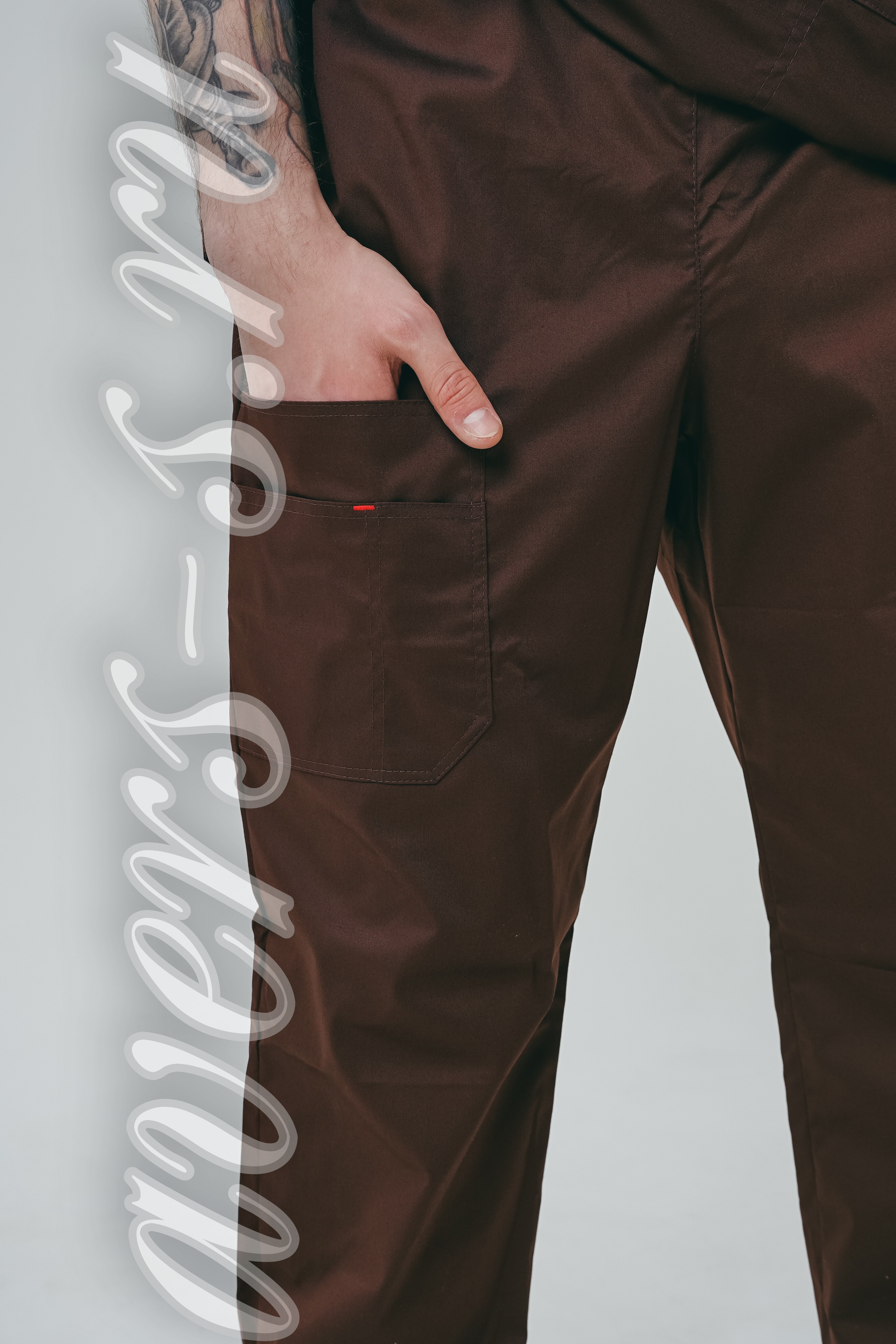 Слева -двойной карман. Все карманы и кокетки отстрочены двойной строчкой.