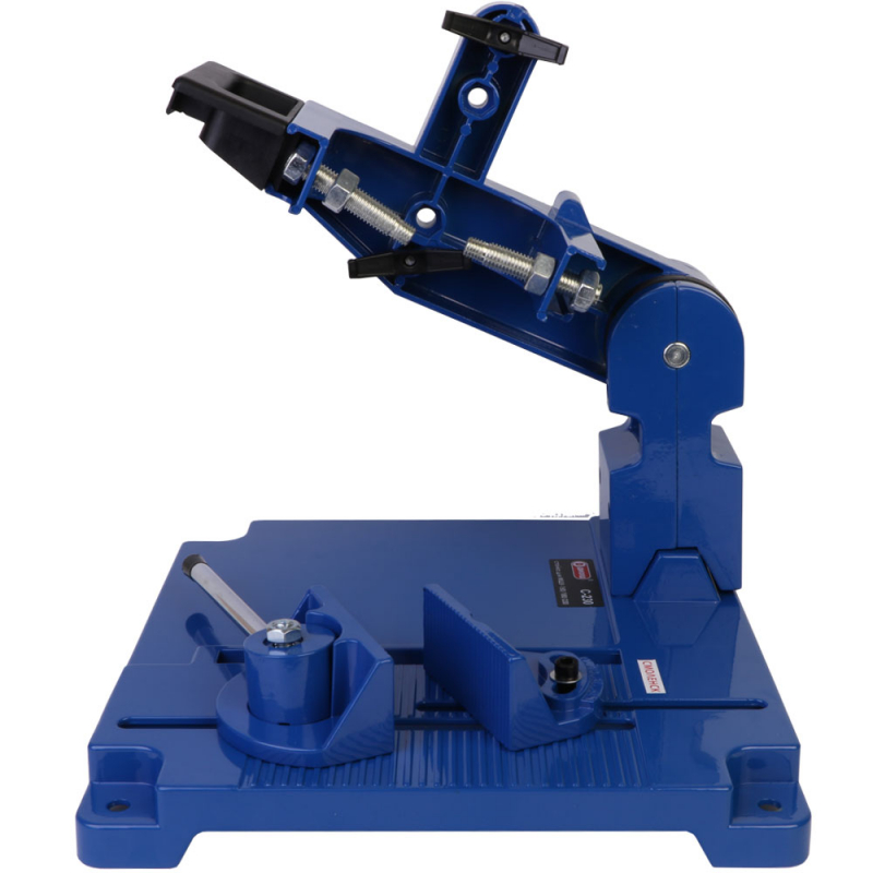 Стойка для машин шлифовальных угловых (в дальнейшем по тексту – стойка) является стационарным приспособлением для крепления машин шлифовальный угловых (МШУ 150/180/230) с номинальным диаметром шлифовального отрезного круга от 150 мм до 230 мм включительно. Использование стойки позволяет быстро и точно разрезать под прямым углом и с наклоном до 45° труб, профилей, полос из металла и других материалов в зависимости от используемого шлифовального отрезного круга.