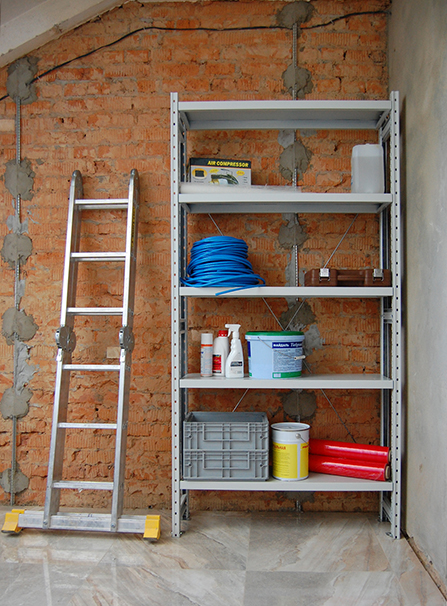 Все элементы стеллажа окрашены полимерной (порошковой) краской RAL 7035 светло-серого цвета.