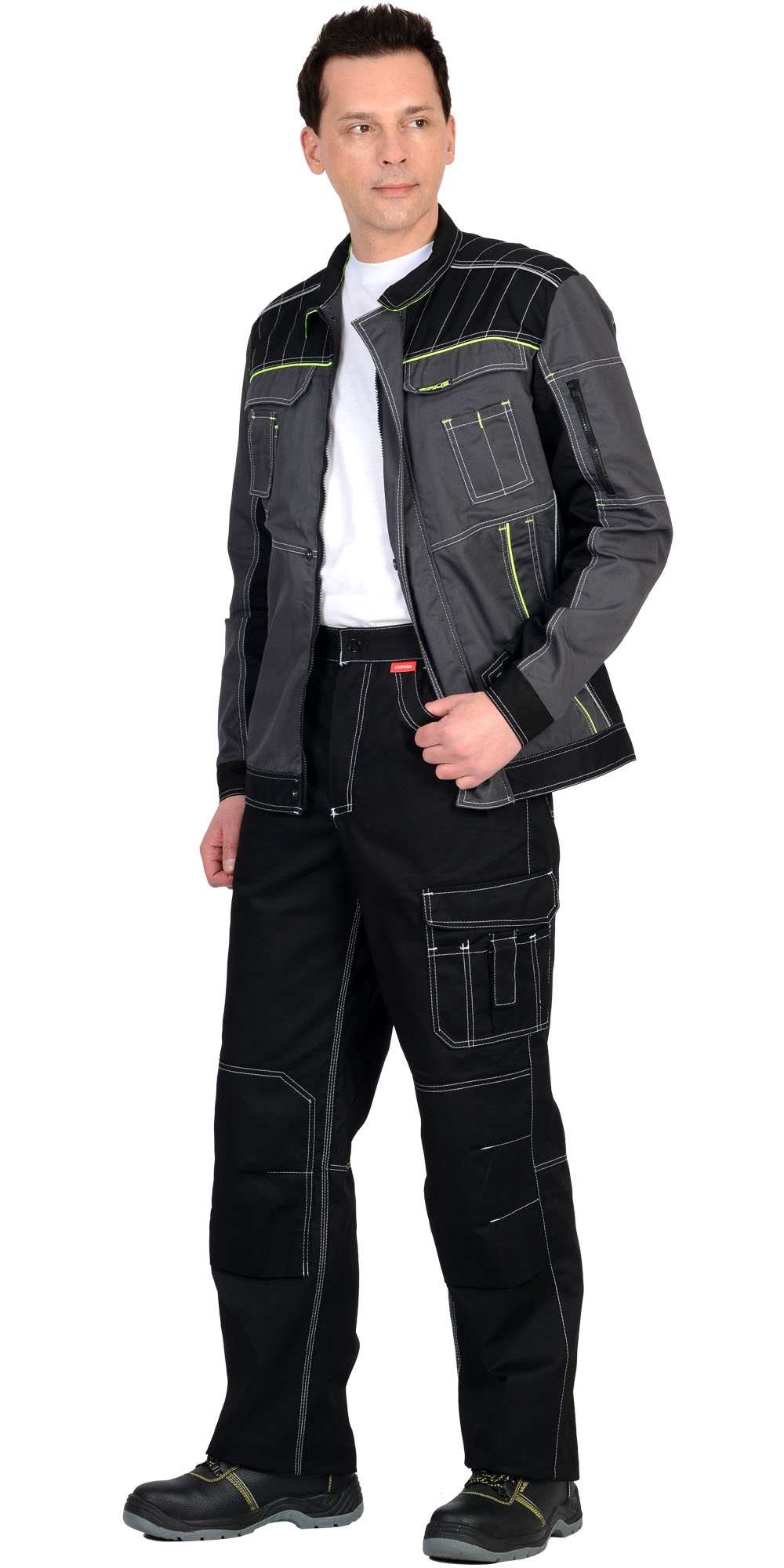 Брюки прямые, на притачном поясе, с застёжкой спереди на молния, с боковыми внутренними карманами, с часовым карманом; на задних половинках с отрезной кокеткой, двумя накладными карманами и карманами под инструменты. В брюках предусмотрен СВ кант для обозначения сигнальной видимости