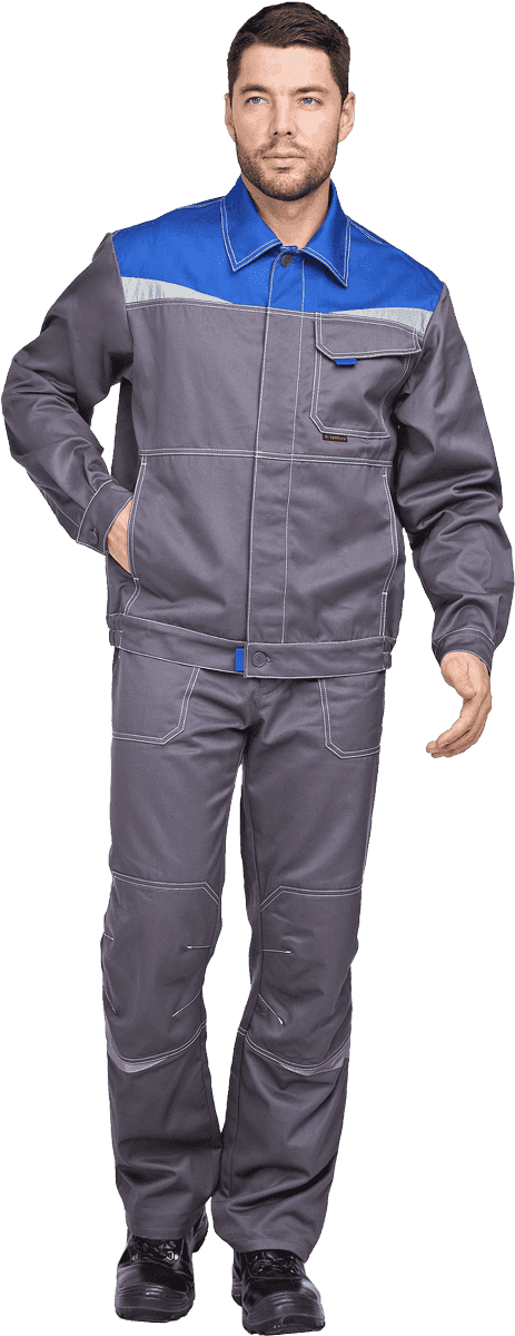 Костюм состоит из куртки и брюк.