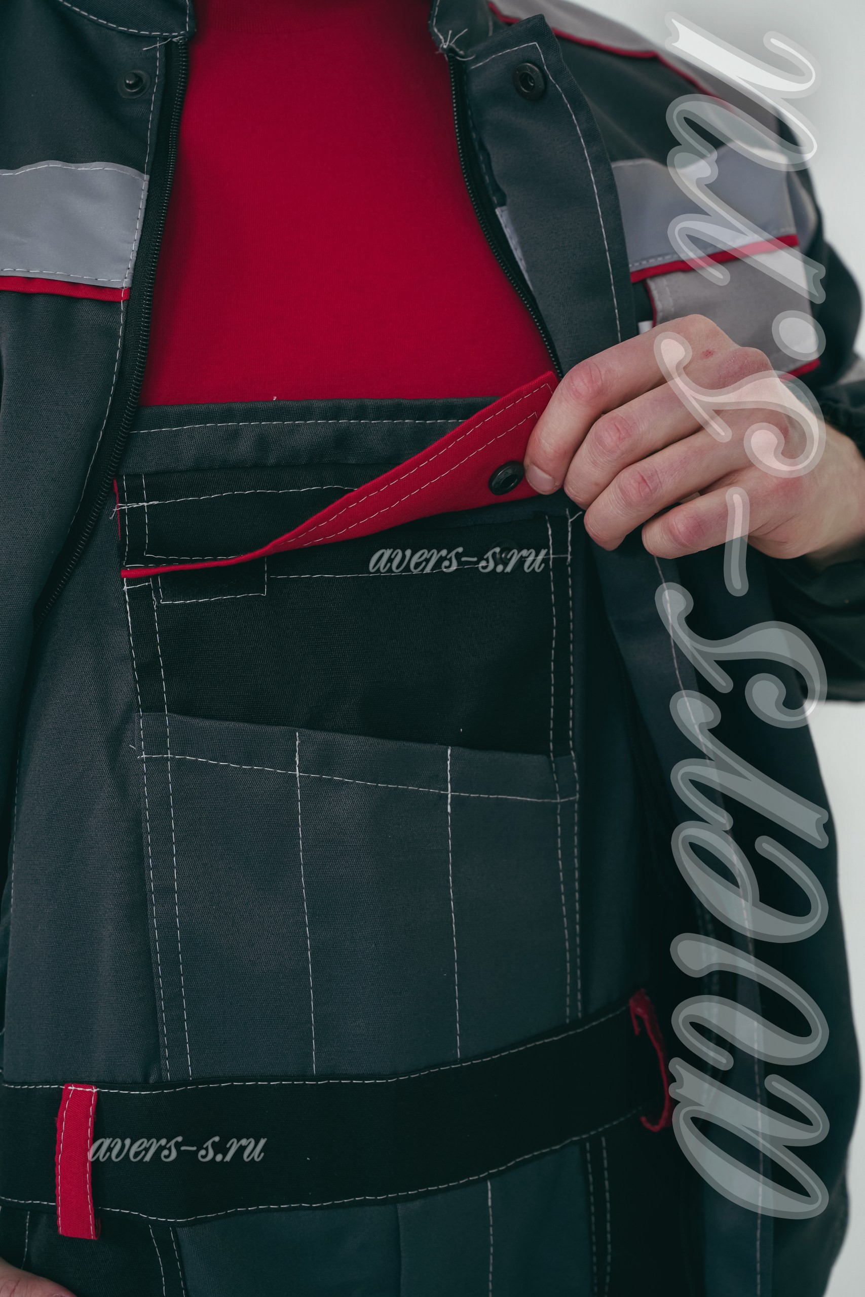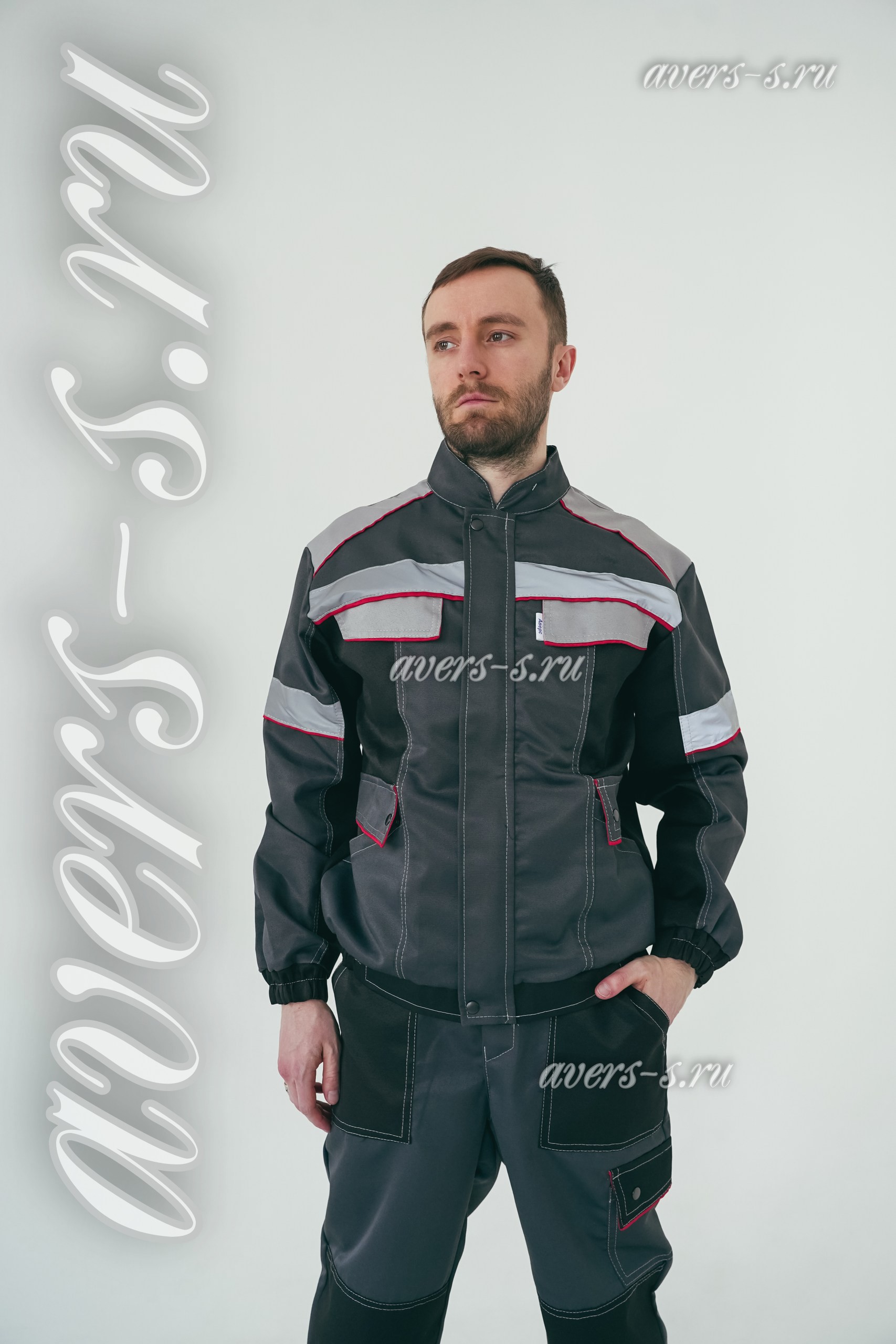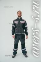 Куртка короткая, с центральной застежкой на молнию, с ветрозащитной планкой на кнопки, воротник – стойка, с верхними прорезными карманами, с нижними накладными карманами. Рукава втачные, разрезные с притачными манжетами. Притачным поясом с эластичной тесьмой по бокам. Полукомбинезон прямого силуэта, с карманами на нагруднике , с застежкой гульфика и застежкой в правом боковом шве на пуговицы, с боковыми накладными карманами на передних половинках, с карманом на боковом шве, с наколенниками, с карманами на задних половинках, с карманами для инструментов, с резинкой по спинке для лучшего прилеганияВ костюме предусмотрен СВ кант и СОП шириной 50мм для обозначения сигнальной видимости.