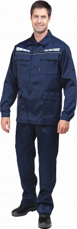 Костюм состоит из куртки прямого силуэта и полукомбинезон.