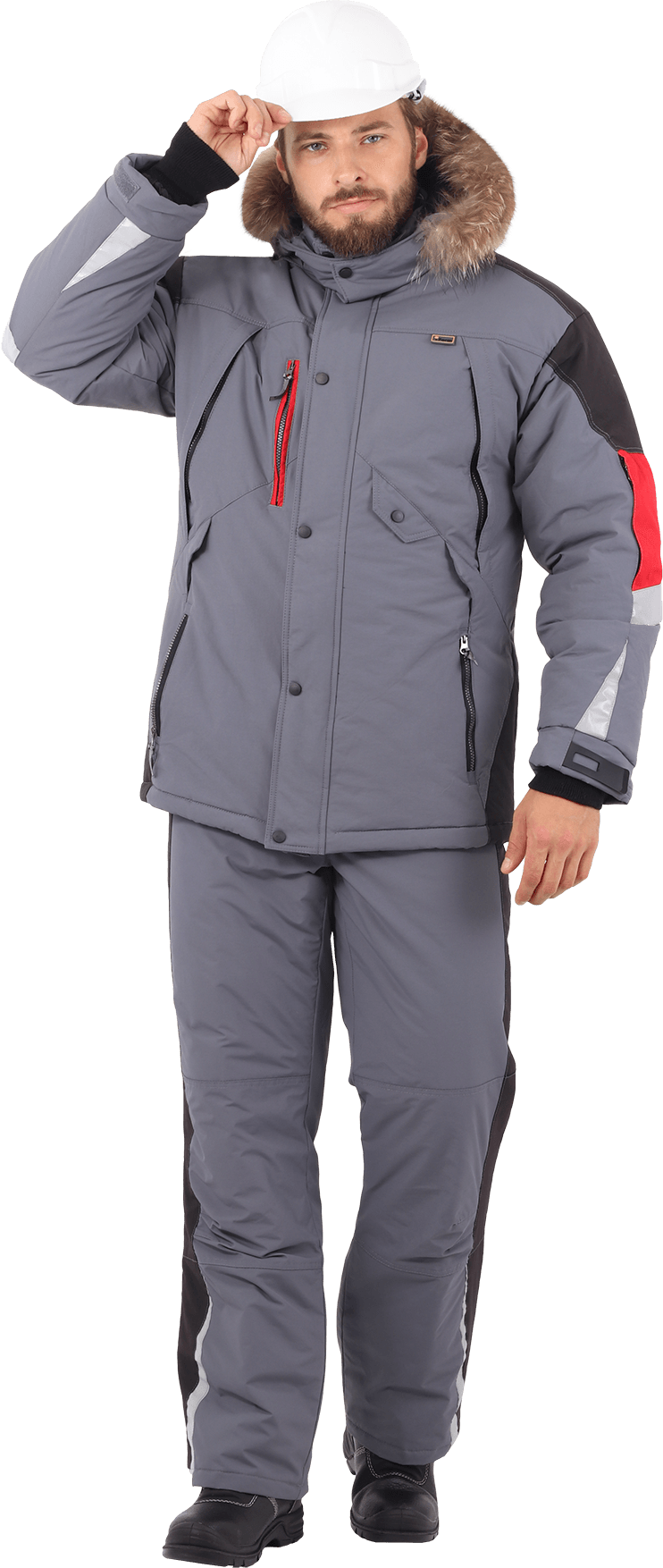 • регулируемый, съёмный капюшон со съёмной меховой опушкой из
