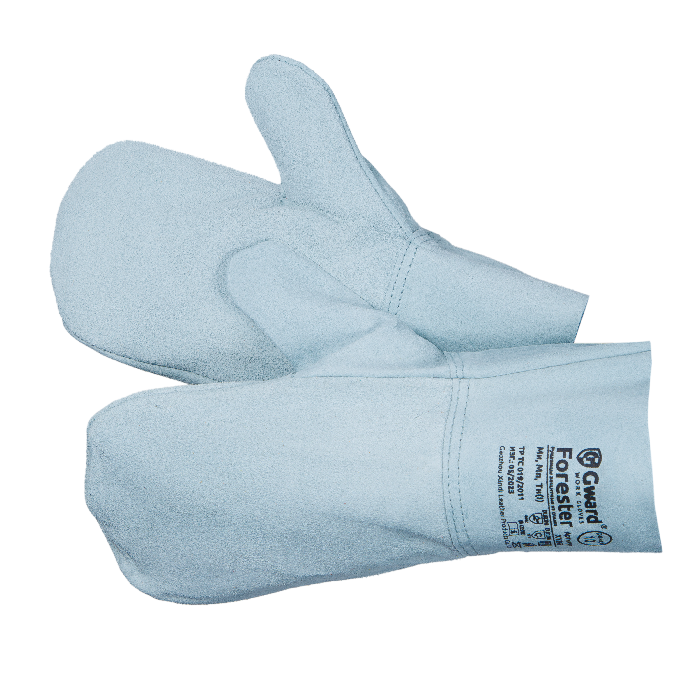 Цельноспилковые рукавицы. Сшиты из толстого и прочного спилка КРС серого цвета. . Манжет удлиняет рукавицу до общей длинны от кончика среднего пальца до конца манжета до 27 см и способствует эффективной защите запястья и вены от нежелательных царапин, порезов, ударов и т.д.